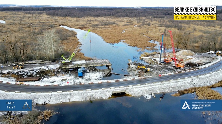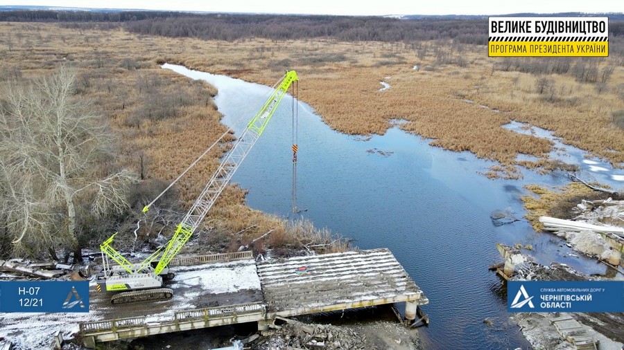 Міст через річку Удай поблизу села Переволочна на трасі Н-07 Київ - Суми - Юнаківка закритий на демонтаж. Наразі половину старої конструкції розібрали. Розпочато забивання паль для нових опор