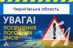 Служба автомобільних доріг у Чернігівській області попереджає водіїв про погіршення погодних умов, що може вплинути на обстановку на автошляхах.