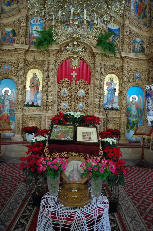 У XIX столітті первинний триярусний іконостас замінили на одноярусний, використавши царські ворота від старого іконостасу. Історики кажуть, що зробили це для того, щоб позбутися зображень гербів ненависних Російській імперії гетьманів Івана Мазепи, Павла Полуботка та інших козацьких родів.