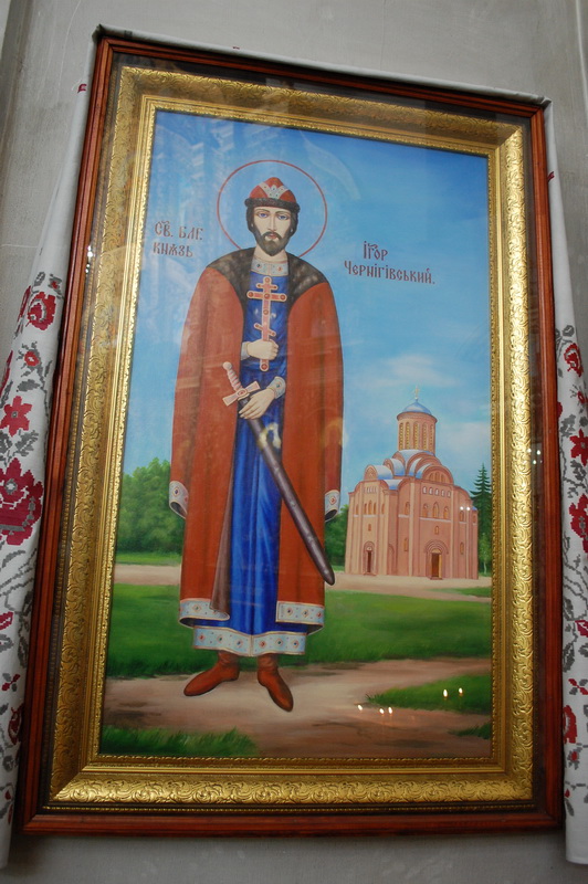 «До основного зображення пізніше додали образи святих воїнів, які особливо шануються православною церквою на Чернігівщині, – продовжує розповідь отець Роман. – Унизу ікони зображені українські князі й воїни: Володимир Великий, Борис і Гліб, Микола Святоша, преподобний Ілля Печерський, якого називають Муромським».