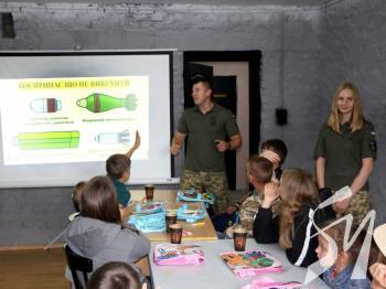 Військові провели навчання з розпізнавання характерних ознак, які можуть свідчити про можливу належність підозрілого предмета до вибухового пристрою. Головним завданням було розповісти дітям про уникання контактів з такими «небезпечними іграшками».