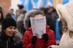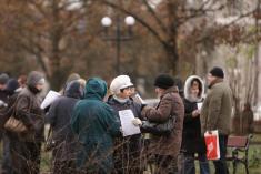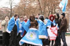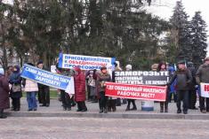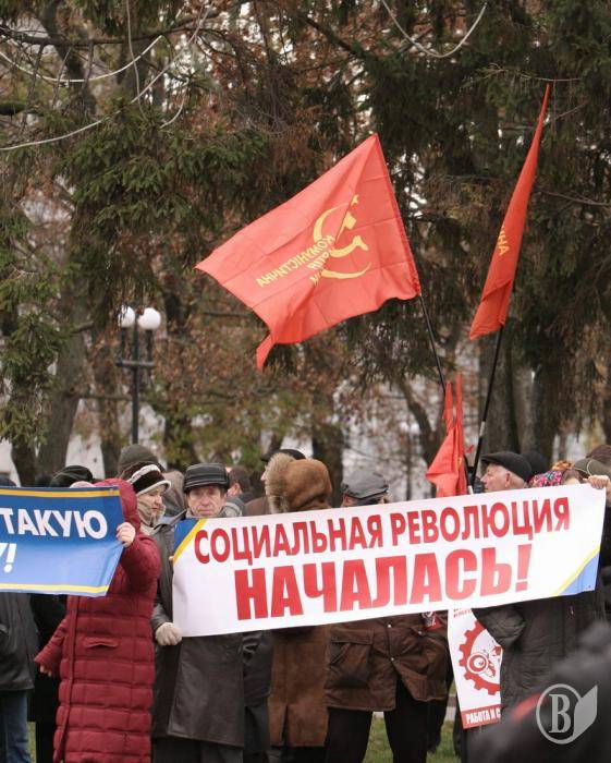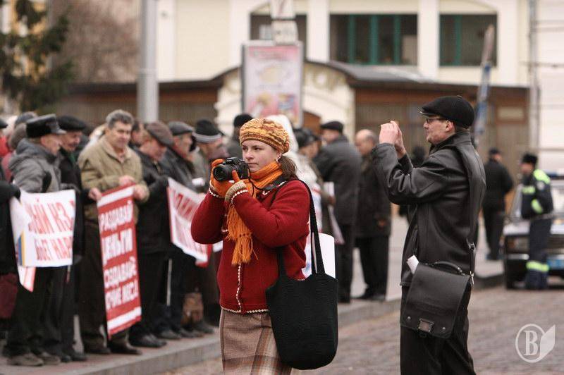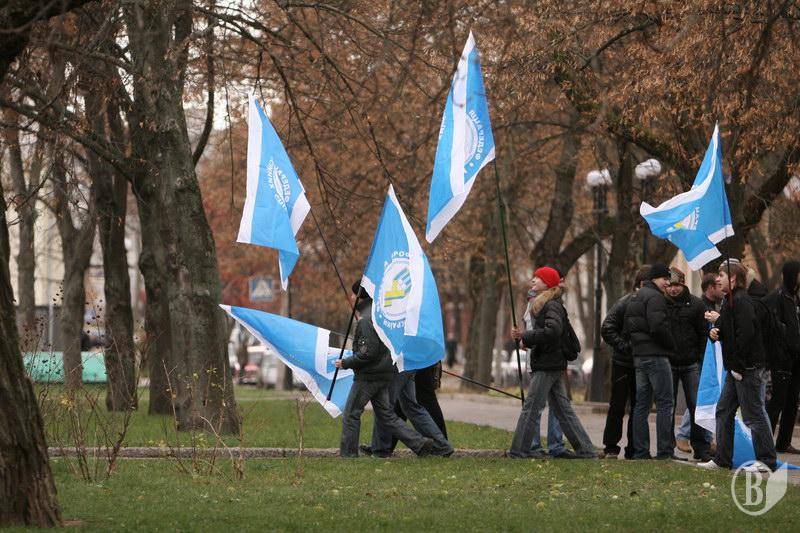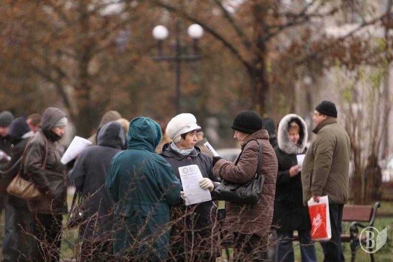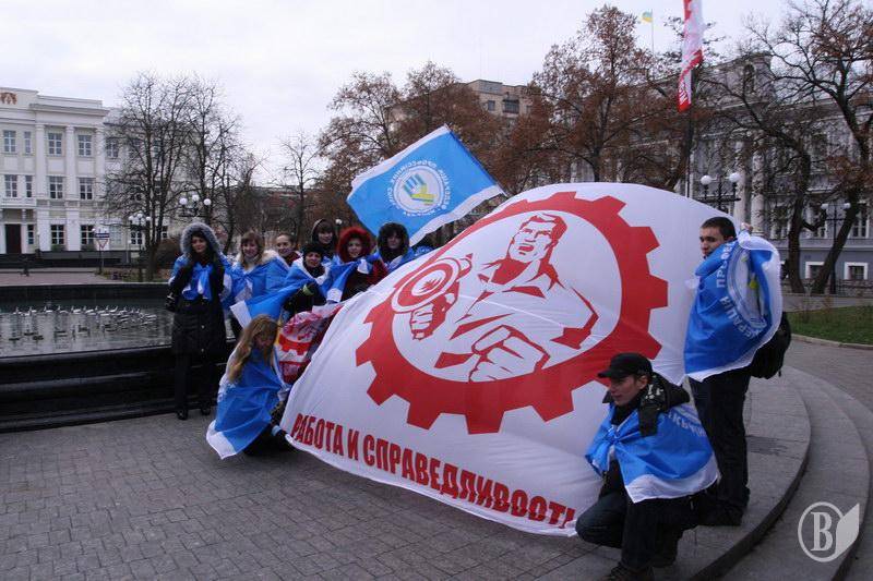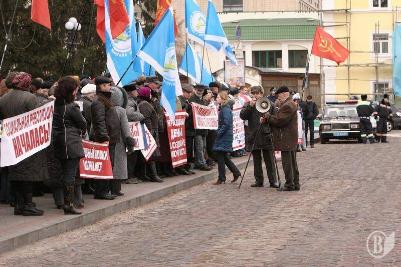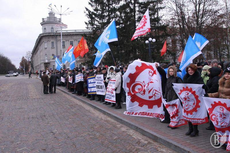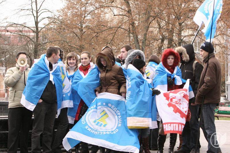 На центральну площу вийшов різний за віком люд. Хлопці з прапорами Федерації профспілок України. Дівчата – плакатами і хитрючими очима. Люди старшого віку – з різноманітними транспарантами.