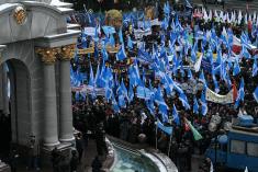 В г.Киеве состоялась всеукраинская акция протеста Федерации профсоюзов Украины против попыток власти и работодателей перевести груз кризиса на плечи обычных работников.