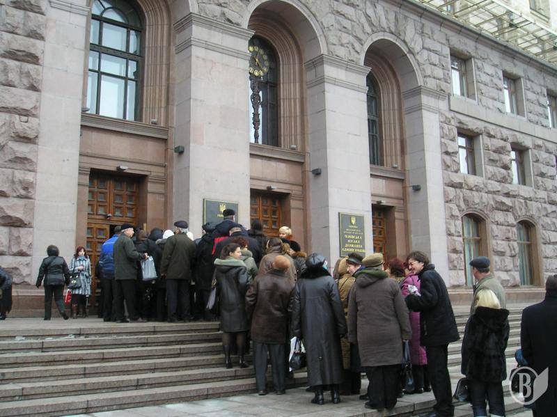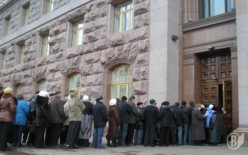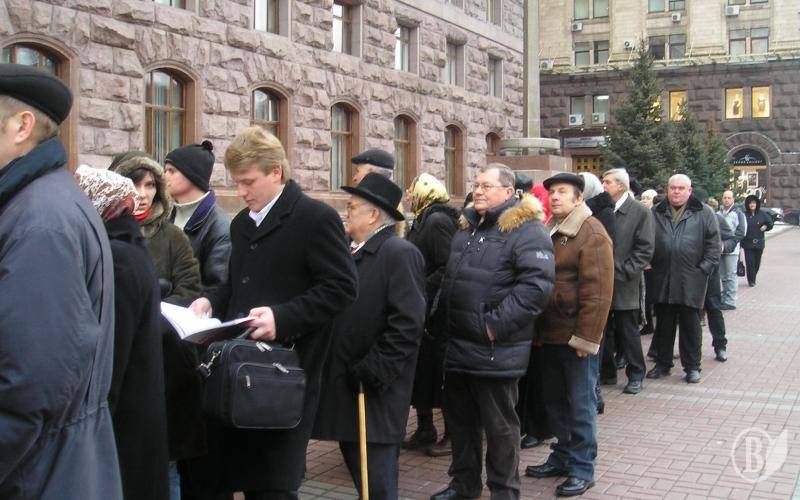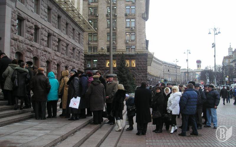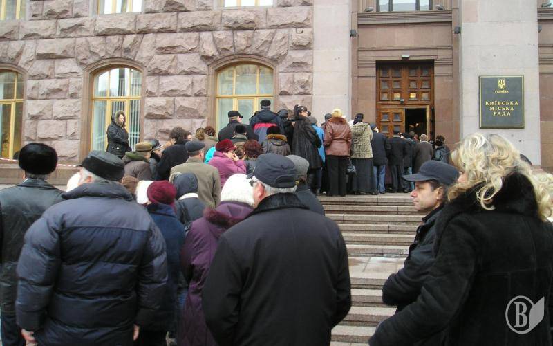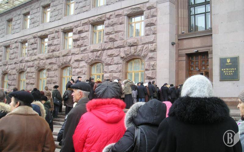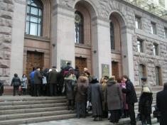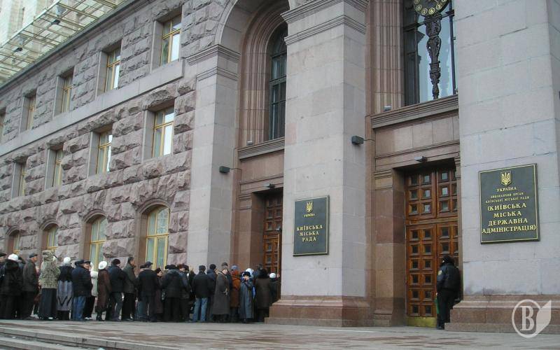 Перед входом до Київської міської ради утворилася довга черга паломників.