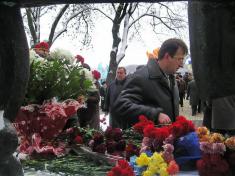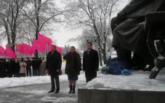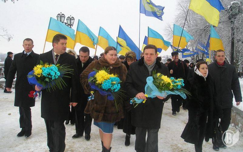 Представники влади міста та області, делегації на чолі з головою ОДА Володимиром Хоменком та обласної ради Наталією Романовою поклали квіти до пам’ятника Тарасу Шевченку, а також до каменя борцям за волю України.