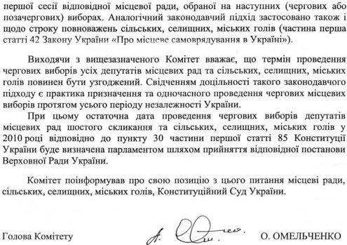 Відповідь шукаємо у висновках Комітету з питань державного будівництва та місцевого самоврядування від 19 березня 2009 року.