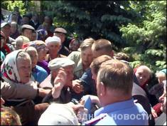 Нервы у разъярённого люда не выдержали. И, если бы не широкие плечи сотрудников милиции, то страшно было бы прогнозировать судьбу «горемычного» госчиновника.