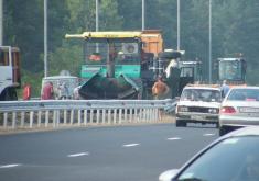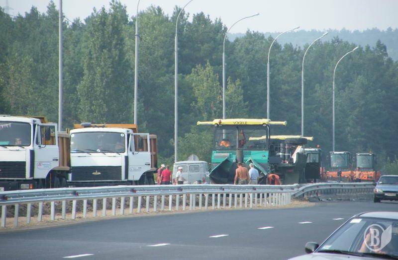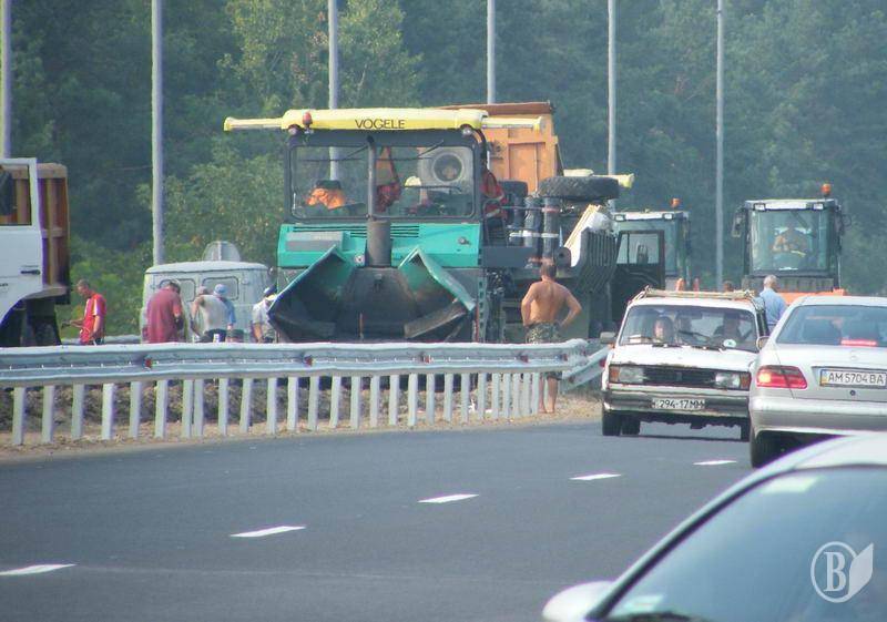 За п’ять днів до часу «Ч», тобто часу «Я», перевіряю стан справ на ділянці. Незважаючи на день недільний, робота кипить. Працює потужна техніка. Новеньки на вигляд самоскиди, катки. Робітники в жовтогарячих жилетах і просто «topless» (у затінку – до +40). Чорна смуга свіжого асфальту. Характерний запах.
