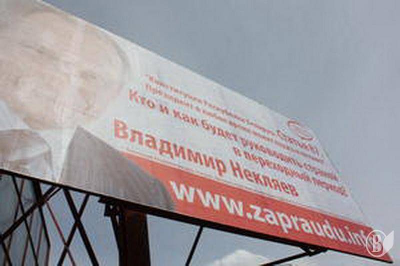 Белорусская кампания"Говори правду"не стала изобретать велосипед и воспользовалась идеей штаба экс-кандидата в президенты Беларуси Александра Милинкевича, разместив плакаты своего лидера Владимира Некляева на территории смежного государства.