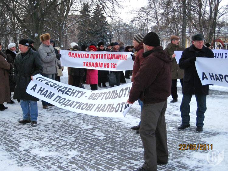 Всьо було чотко і правильно! «Ні - політичним репресіям», «Фірташу – Нафтогаз, а народу – підвищення цін на газ», «Президенту – вертольоти, а нам – податкові нальоти», «Чернігів проти підвищення цін на газ», «Чернігів – проти підвищення пенсійного віку».