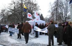 Опозиція тримала плакати перед адміністрацією, щоб видно було усім проїжджаючим у тролейбусах.