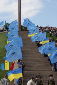 Серед влади-регіоналів який розумник додумався на Меморіалі Слави на підйомі до могили Невідомого солдата поставити прапороносців Партії регіонів у перемішку з державними.