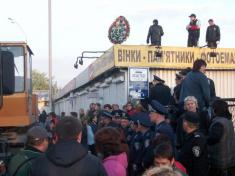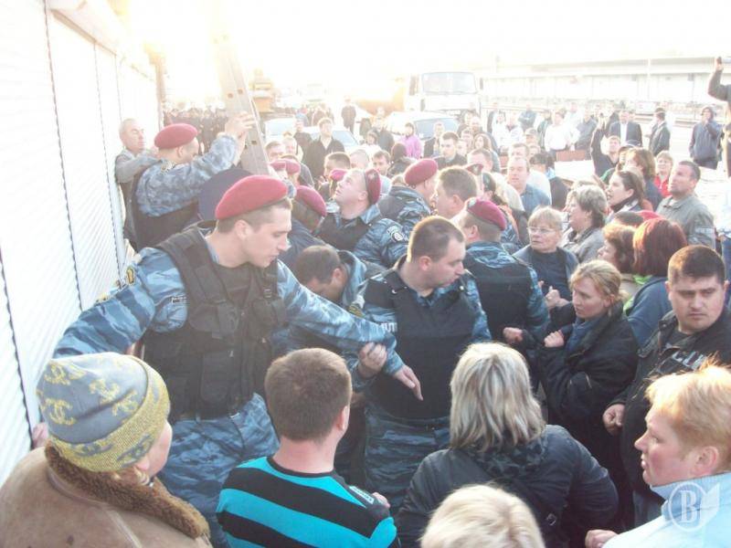 Як повідомляє сайт "Майдан", між 4:00 та 5:00 годинами прибули автокрани, платформи та чимала кількість міліції, а підприємці та працівники ринку чинили їм спротив, захищаючи свої робочі місця та майно.