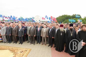 Показовим моментом цього урочистого мітингу стало те, що він проходив під прапорами російської партії ЛДПР, незмінним лідером якої є Володимир Жириновський. Самого Володмира Вольфовича на мітингу не було, а от від української сторони були, принаймні, три народні обранці від партії регіонів - Михайло Чечетов, Григорій Маньковський та Сергій Андрос.