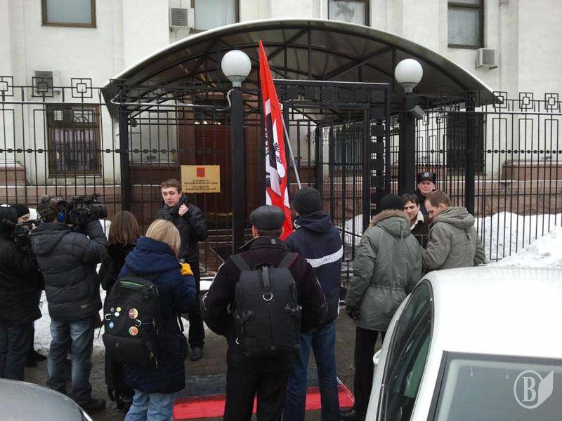 Пікетування посольства Російської Федерації у Києві відбулося сьогодні, 28 січня на знак протесту проти ув'язнення у місті Невинномиськ активістів Братства - Максима Михайлова і Тараса Карпюка, а також ще двадцятьох активістів проукраїнських організацій.