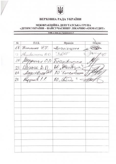 - Міжфракційне об’єднання «Дітям України – найсучаснішу лікарню «Охматдит» діятиме на принципах верховенства права, законності, рівноправ’я, колегіальності, вільного обговорення і вирішення питань, - прокоментував Валерій Дубіль. - До нас можуть долучитися інші народні депутати, ми налаштовані на співпрацю з керівництвом та комітетами Верховної Ради, депутатськими фракціями та групами, Адміністрацією Президента та Кабінетом Міністрів, іншими органами державної влади та громадськими організаціями і об’єднаннями.