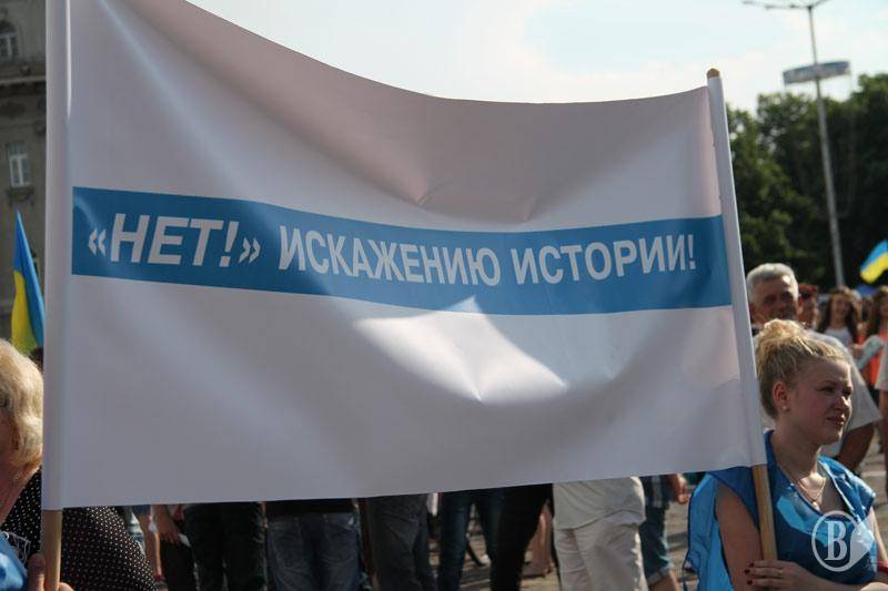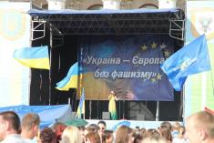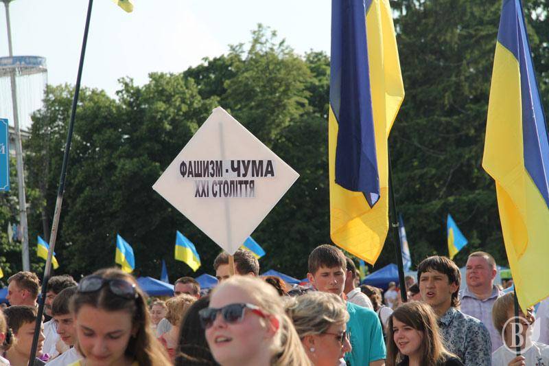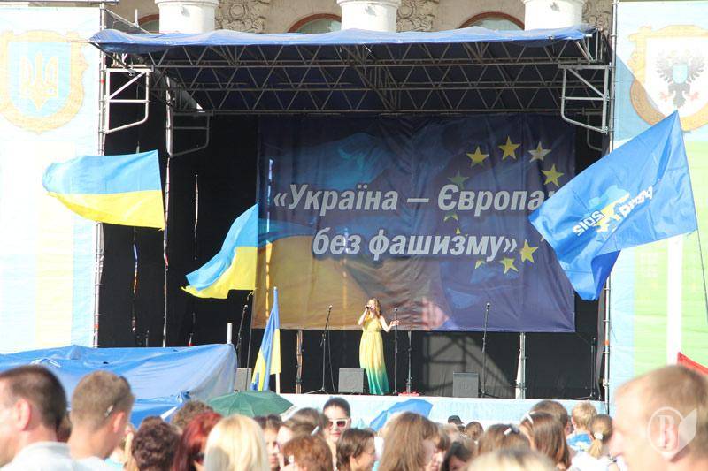 Так, зовсім, забули… Окрім глибокої стурбованості фашизмом в Україні (щоправда, усі спікери обходили конкретику), з трибуни закликали йти у… Європу. Так, саме туди. Виглядало це приблизно так, ніби людей зігнали в точку збору і оголосили замість ГУЛАГу нову сонцесяйну перспективу. Хоча тхнуло від цього маразму не менше, ніж від перспективи ГУЛАГу.