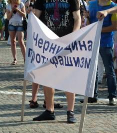 Цікаво, що жоден з опитаних учасників акції, які тримали плакати зі словом «фашизм», не зміг пояснити значення цього терміну (див. відео нижче) крім того, що українського фашизму чи нацизму як такого в Україні просто не існує. Просто існує українофобія совєцько-російських нацистів, для яких український націоналізм на 22-му році номінальної «незалежності» має той самий «функціонал», що для чорта сковорідка. Виходить, організатори відлупцювали самі себе по потилиці? У цьому смислі як ще раз не згадати крилатий вислів Черчіля?