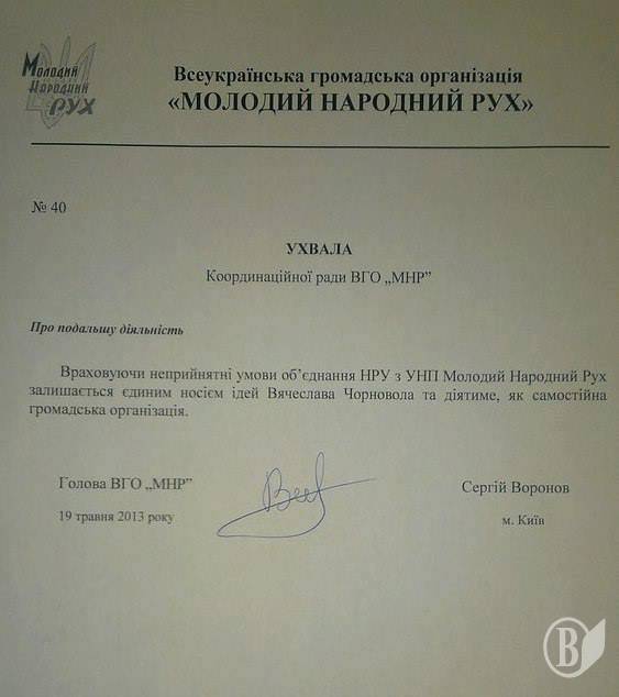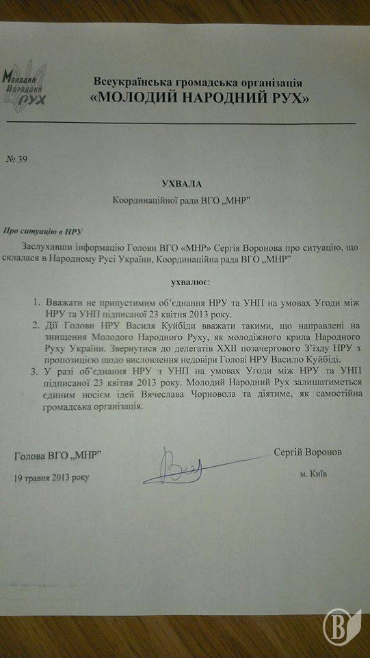 Молодіжне крило "Народного Руху" вже висловило незгоду з таким рішенням і назвало його зрадою ідей Чорновола і фактичною ліквідацією "Народного Руху України".