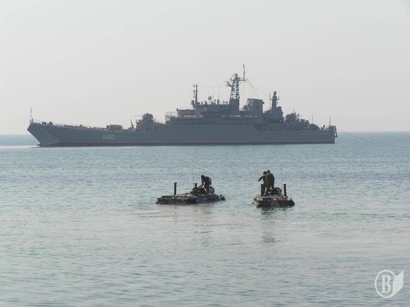 Одне з них, умовно, намагалося нелегально доправити зброю в район бойових дій. Його виявив корабельний гелікоптер Ка-27, що піднявся з борту фрегата U-130 «Гетьман Сагайдачний». Контрабандиста було перехоплено, зупинено і висаджено на нього доглядову групу. Кульмінацією морської фази навчань стала висадка десанта на узбережжя, де закріпилися умовні бойовики, десантування проводилося з борту ВДК «Костянтин Ольшанський» у БТРах на плав. Ворога було знищено.