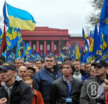 Партия всеукраинское объединение «Свобода», как и обещала, собрала сегодня вече в парке Шевченко в Киеве.