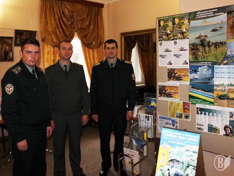 – Робота проводилася і у центрах зайнятості. З цією метою використовувалися рекламні проспекти. Працюючи у навчальних закладах, працівники військкоматів віддавали перевагу особистому спілкуванню з потенційними кандидатами на проходження військової служби за контрактом. Велику зацікавленість у потенційних контрактників викликали тематичні відеоролики, присвячені проходженню військової служби за контрактом у різних видах Збройних Сил України, інформація про військові навчальні заклади, вимоги до вступу та спеціальності, за якими готують майбутніх офіцерів. – повідомив обласний військовий комісар полковник Костянтин Нікулін.