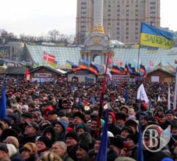 Несколько десятков тысяч украинцев на Майдане Независимости в Киеве собралось 19 января в знак протеста против режима деспотии, которую в Украине установили регионалы.