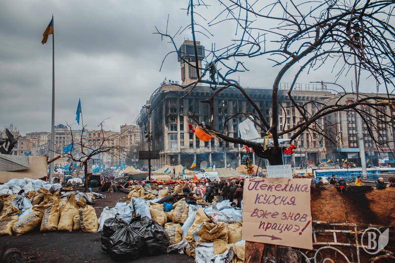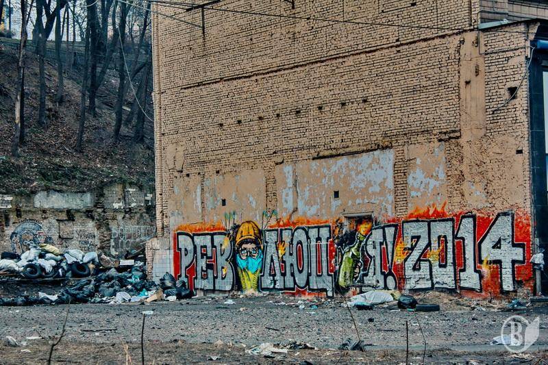 Найбільш моторошним на Майдані виглядає Будинок Профспілок. Напів спаленний, він стоїть і показує усю трагічність тих подій, що відбувалися тут протягом декількох місяців.