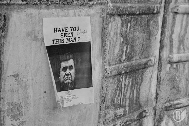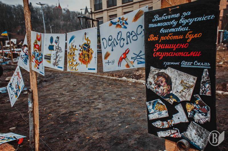 Також, далі по вулиці Грушевського розмістилася невелика виставка вуличного художника. Він малював шаржі на нашого колишнього "президента" та таким чином збирав собі на "Олівці та невелике Межигір'я і мисочку « пшонки" у трилітрову банку.