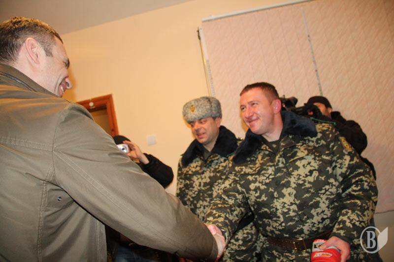 Виталий Кличко не только рассказал военным о политической ситуации, но и подписал боксерские перчатки руководителю заставы.