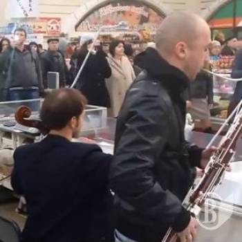 Флешмоб на рынке Привоз устроили музыканты Одесского национального филармонического оркестра под управлением Хобарта Эрла.