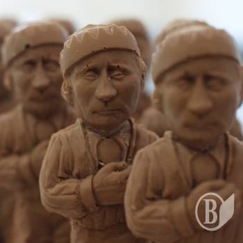 После увиденного вам явно захочется откусить ему голову!", - говорится на официальной странице производителя такого сладкого сувенира. Шоколадного Путина продают пока только во Львове. Президент РФ меньшего размера – в ватнике и бомбой в руках за спиной – стоит 35 грн, а большего – в смирительной рубашке и наполеоновской треугольной шапке – 60 грн.