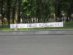Неизвестные(скорее всего, анархисты) повесили в Чернигове, в районе пиццерии «Базис» баннер в поддержку крымского эко-активиста и анархиста Александра Кольченко.