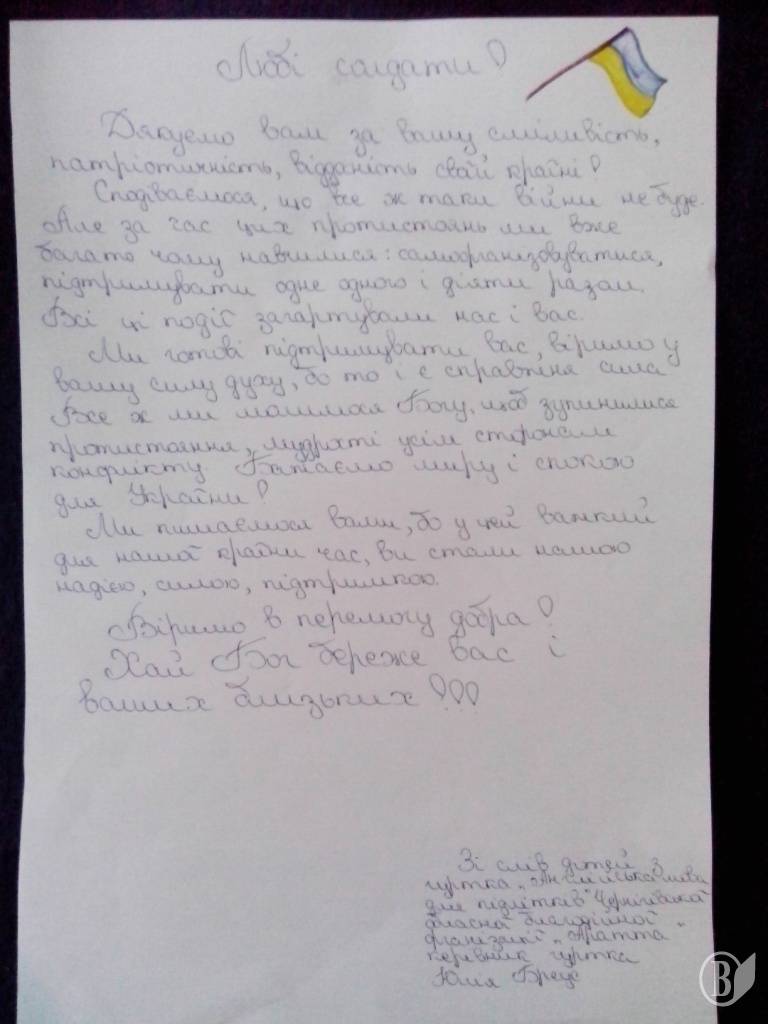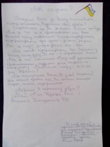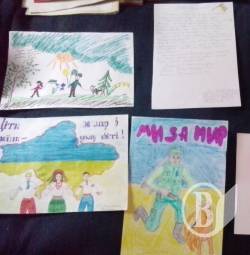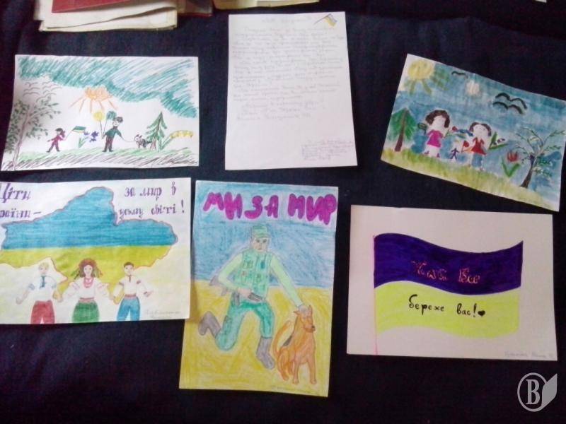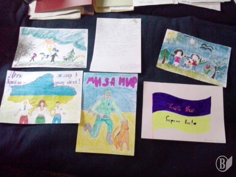 У посилці - лист дійтей до солдат, їхні малюнки, ліхтарі і сигарети.