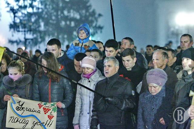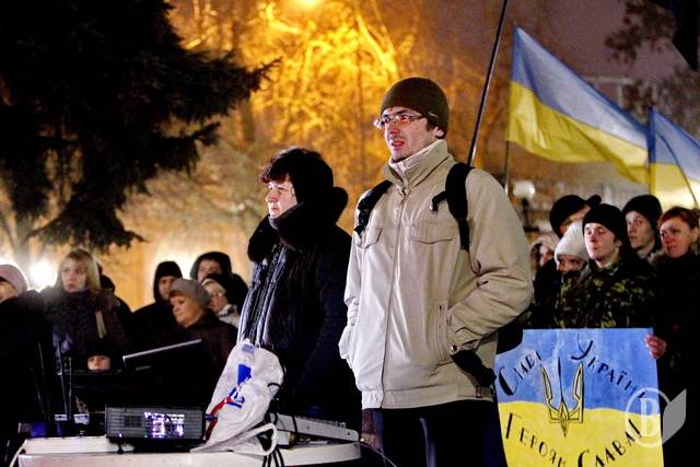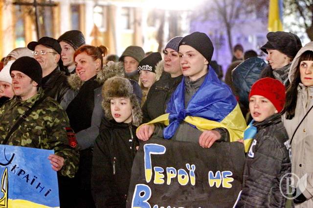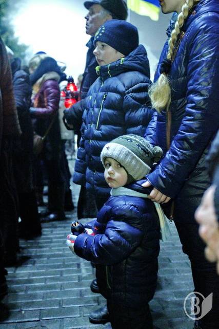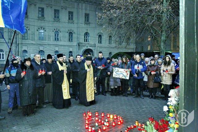 Із лампадками та свічками, квітами, національними прапорами та плакатами із надписом «Герої не вмирають» прийшли сьогодні чернігівці до скверу імені Попудренка.