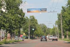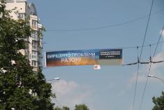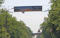 Тролейбусники підняли його на висоту, і він уже повідомляє з розтяжок в україно-маскувальних тонах (дивитися фото нижче) як старий Хотабич, що прилетів із Дніпропетровська, - допоможе виконати всі бажання. Варто тільки звернутися.