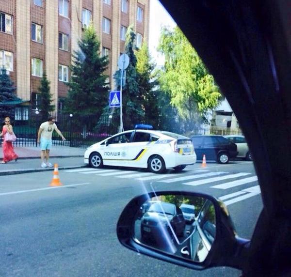 На фото, зробленому на вулиці Герцена в столиці, біля Шевченківського райвідділу міліції, чітко видно, що машина патрульних стоїть на "зебрі". За словами автора фото, місця для зупинки поза переходом було достатньо.