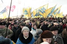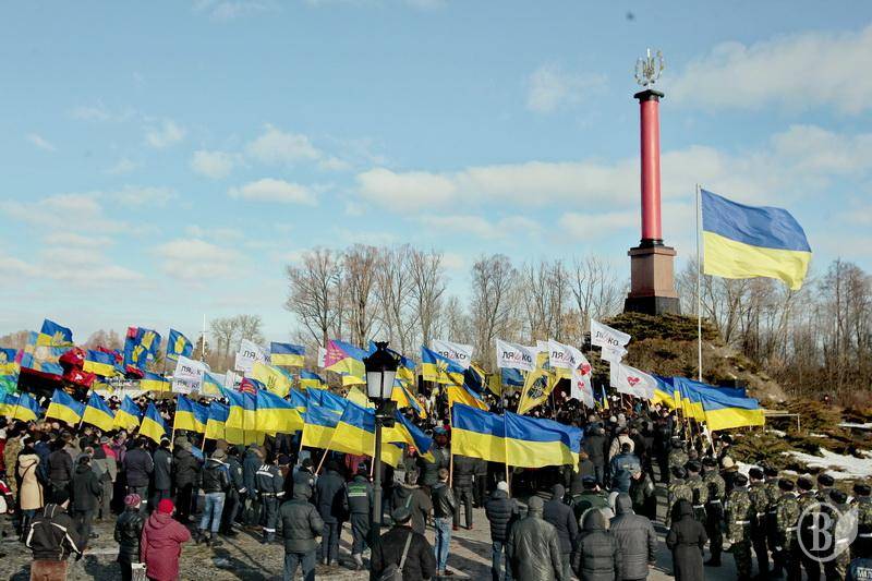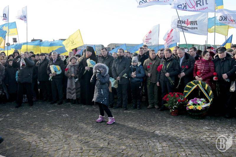 Учасники мітингу вшанували пам’ять загиблих Героїв хвилиною мовчання. Було озвучено звернення Президента України до Українського народу у зв’язку з Днем пам’яті Героїв Крут.