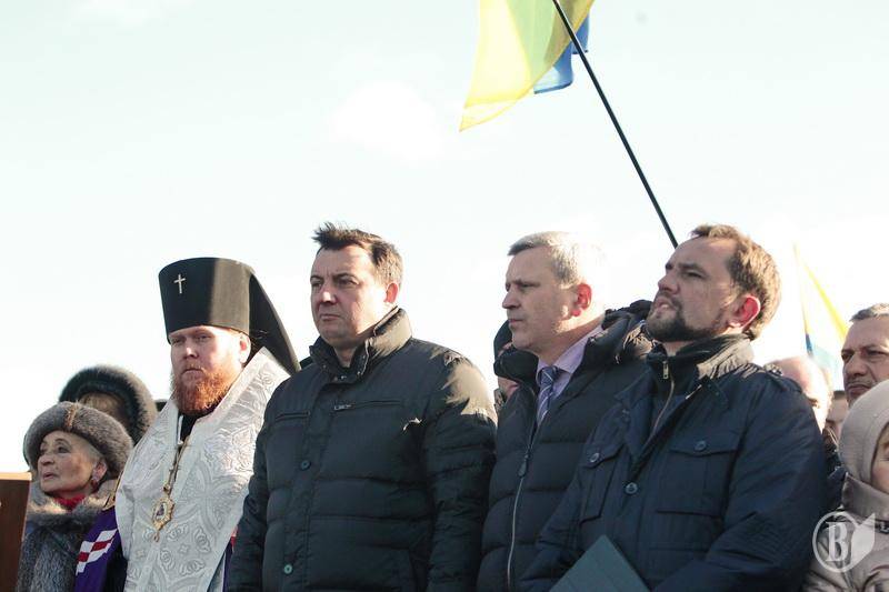До участі у мітингу долучилися і виступили народний депутат України, лідер Радикальної партії Олег Ляшко та його однопартієць, народний депутат України Дмитро Лінько. До присутніх на заході звернулися заступник голови Чернігівської обласної ради Арсен Дідур, голова Українського Інституту національної пам’яті Володимир В’ятрович, а також лідер партії Всеукраїнське об’єднання «Свобода» Олег Тягнибок та відомий громадський діяч, у 1990-1992 роках голова Чернігівського крайового Руху Валерій Сарана. Особливо зворушливими були слова Олени Бєлєванцевої – мами Володимира Близнюка, студента-чернігівця, який загинув у зоні АТО у вересні 2014-го.