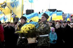 На превеликий жаль, трагічні сторінки історії повторюються. І сьогодні, як і майже сто років тому, тисячі нових героїв жертвують собою заради України. Тож лейтмотивом цьогорічних заходів із відзначення подвигу Героїв Крут стало також вшанування пам’яті бійців АТО, які загинули у боротьбі за незалежність, суверенітет і територіальну цілісність України. Саме у цей день рік тому почався наступ ворога на дебальцевському напрямку.