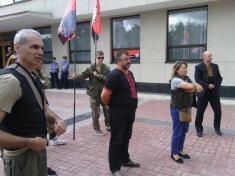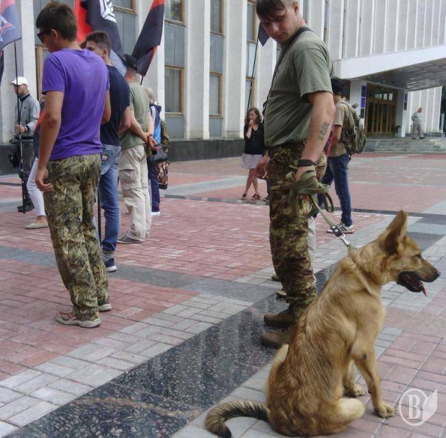 Зо 3 десятка представників патріотичних сил, ветеранів добровольчих батальйонів та волонтерів прийшли за годину до початку сесії під стіни будинку засідань, аби зустріти депутатський корпус і озвучити йому свою вимогу.