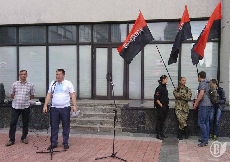 Місце акції було обрано невипадково, адже першим питанням у проекті порядку денного сьогоднішньої сесії стояло відповідне звернення обласної ради до Президента, парламенту та уряду. Його ще в червні подав депутат від партії «Укроп» Сергій Журман.