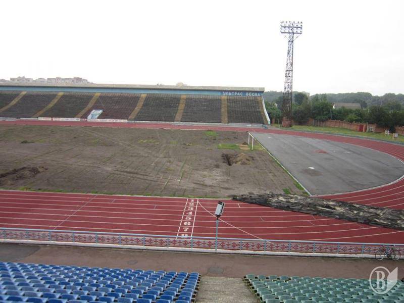 На стадионе им. Гагарина в Чернигове проводятся работы по замене футбольных полей.
