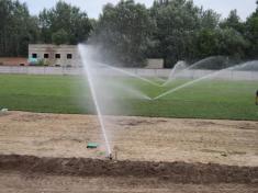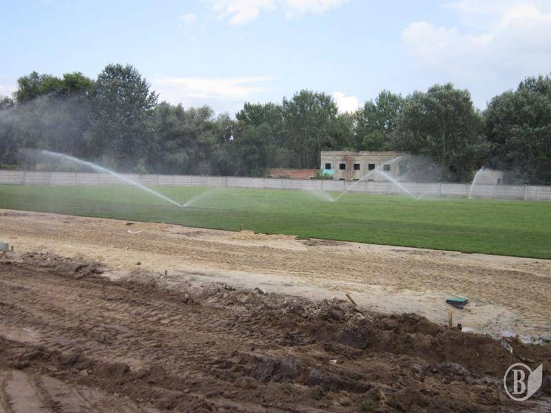 Уже почти полностью завершены работы по демонтажу травяного покрова на главном поле. А на запасном поле полным ходом тестируется система автоматического полива газона.