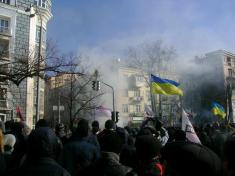 Мені треба було повертатися до редакції зі свіжим репортажем, але напряму, тими самими вулицями я вже не міг вийти на Інститутську: починалося гостре протистояння, бої. Найперше – якраз на Інститутській, навпроти парламенту, що, як відомо, на паралельній вулиці Грушевського. Повстанці розбирали бруківку, кидали каміння на заслони силовиків, підпалили їхню техніку на цих «барикадах». Водночас на дахах будинків з’явилися снайпери, пролунали перші постріли.