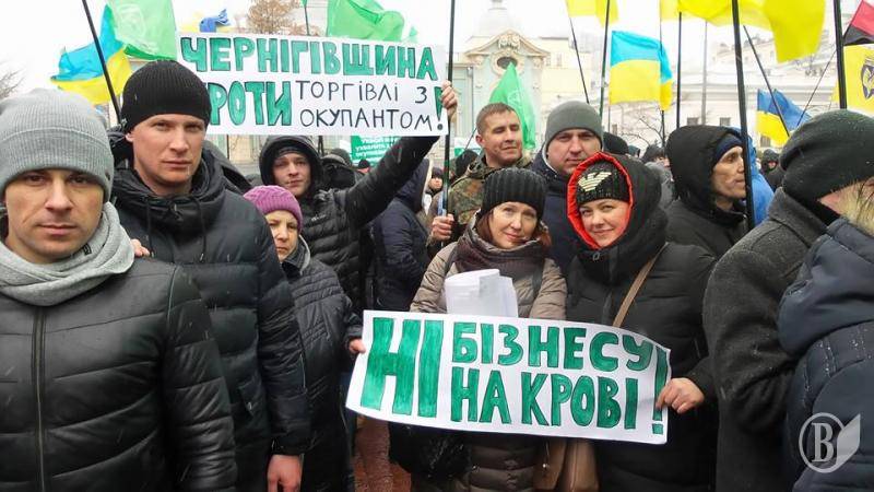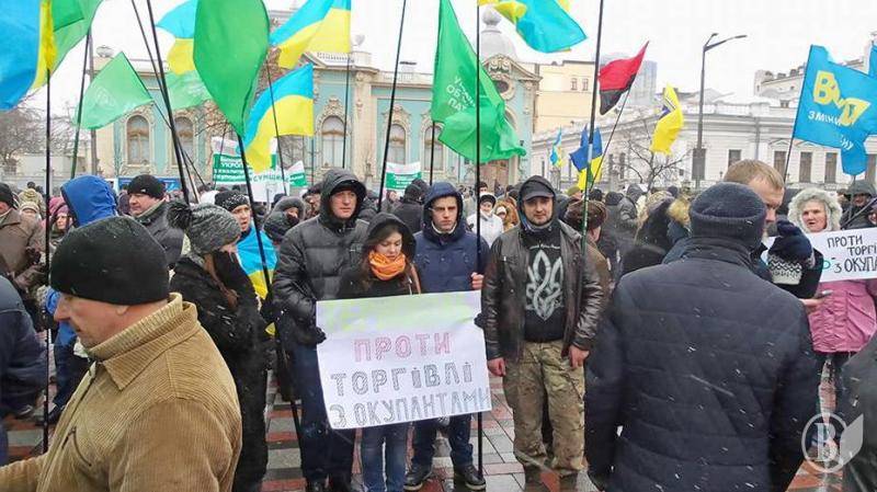 Триває мітинг біля Верховної Ради з вимогами припинити торгівлю з окупованими територіями.