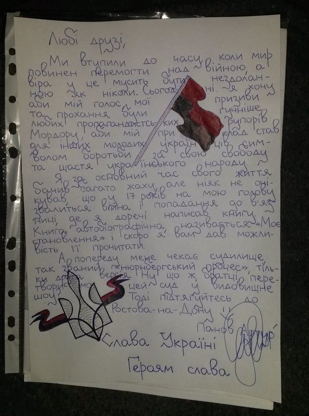 Як пише видання, 14 лютого в Північно-Кавказькому військовому окружному суді Ростова почався судовий процес у справі Артура Панова, разом з ним на лаві підсудних також опинився і ростовський студент, якому інкримінують сприяння у «злочинній діяльності» українця.