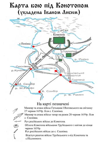 Карта бою під Конотопом (укладена Іваном Лисим). Джерело: history.sumy.ua.