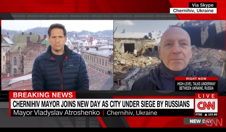Березень 2022 року. Атрошенко під час активних бойових дій заявив CNN, що містяни виживуть і дадуть відсіч ворогу