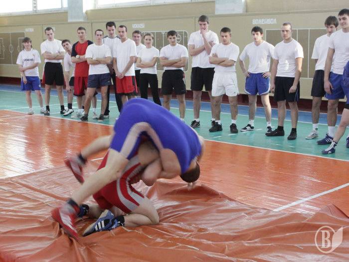 Загалом – 4 команди. У складі – 8 козаків та одна «козачка». Поки що беруть участь лише студенти 3 курсу. Очолював конкурс Заслужений тренер з боротьби Сергій Ткаченко.
